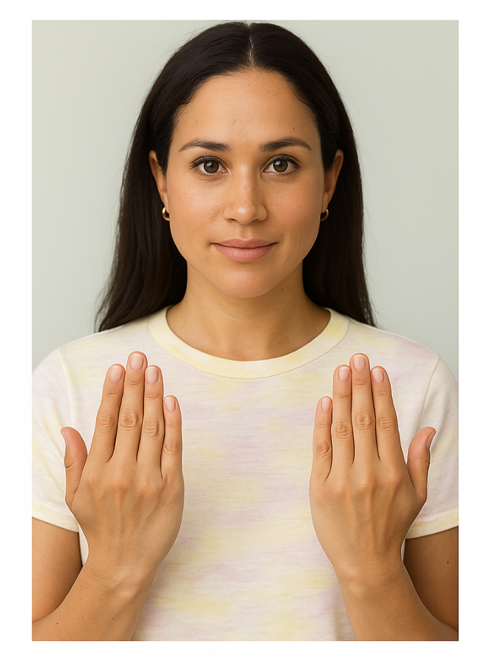 - Hands – Please hold your hands in front of your body. These photos should show your nails clearly and should be of the top of your hands. CLICK HERE for photo example.