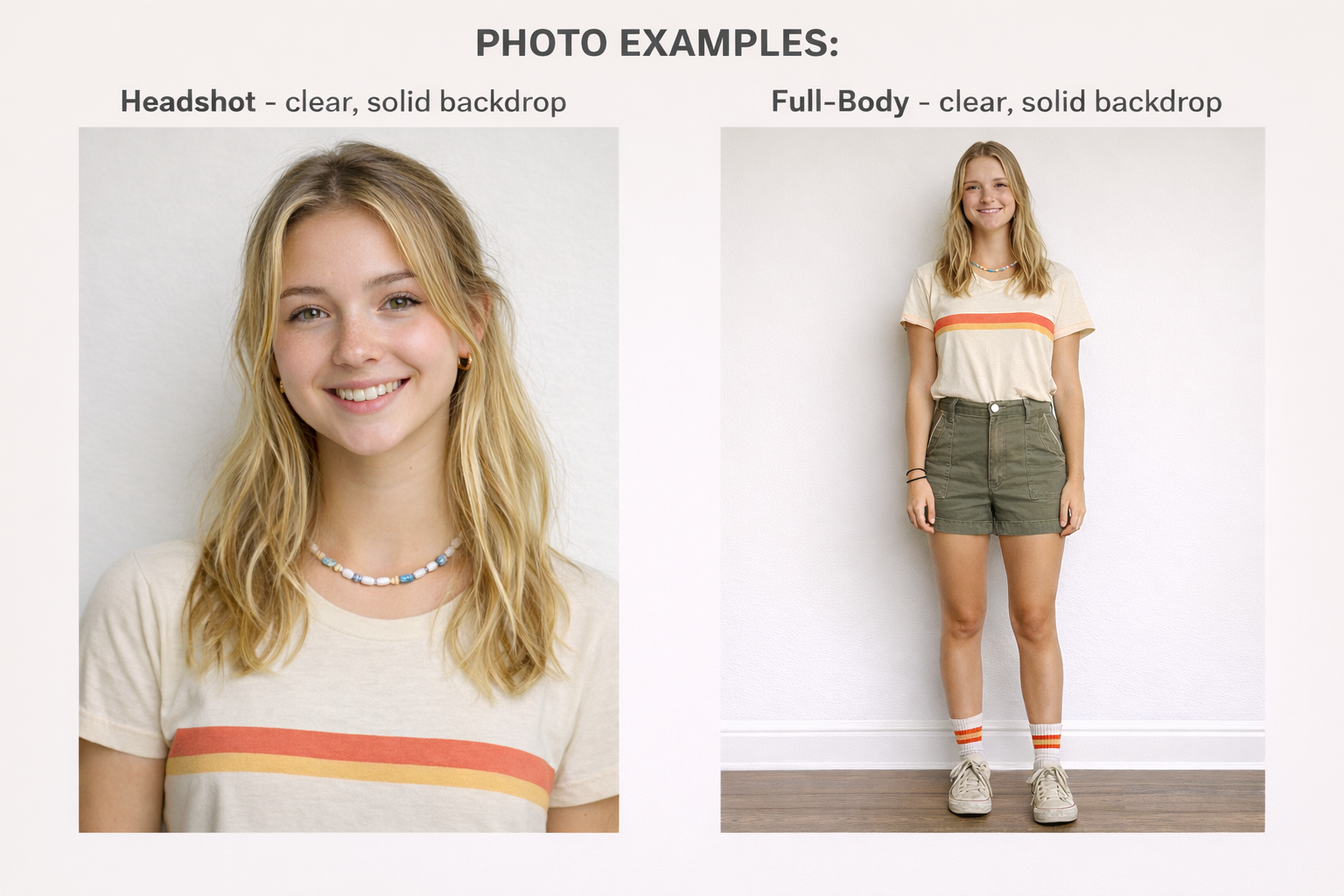 - The photo examples provided reflect the types of wardrobe looks you will be expected to have for filming. These images are a reference shoot for inspiration.