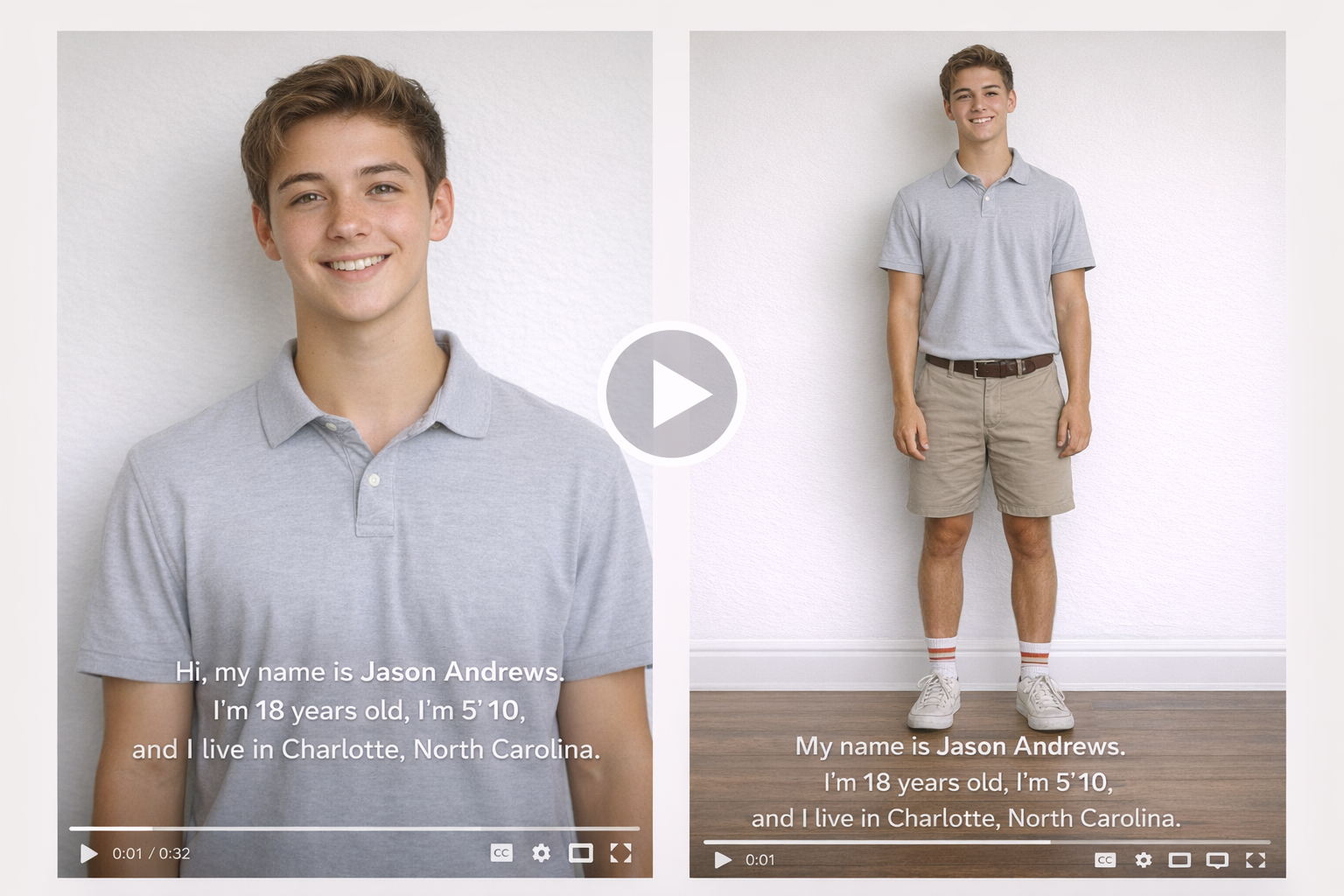 - Your full name, height, and city/state of residence.