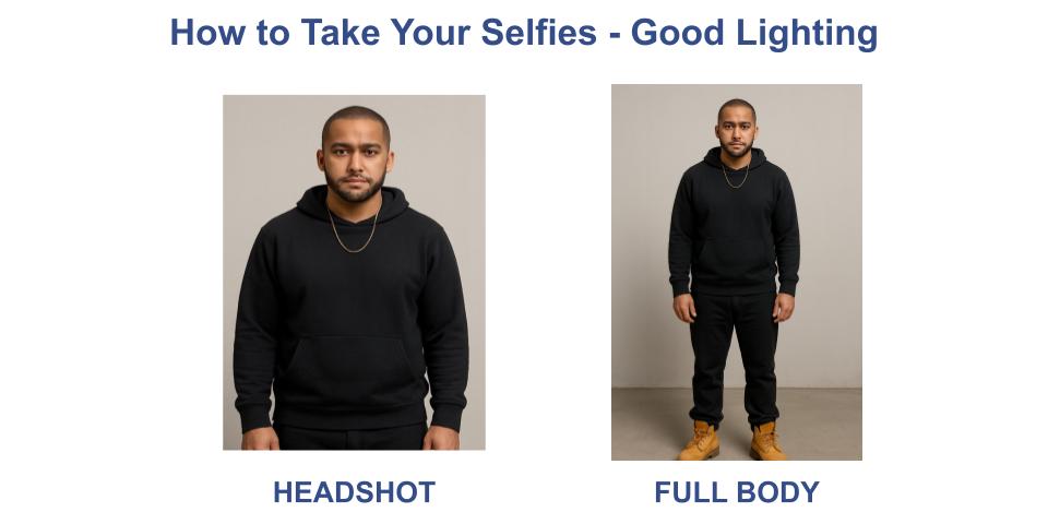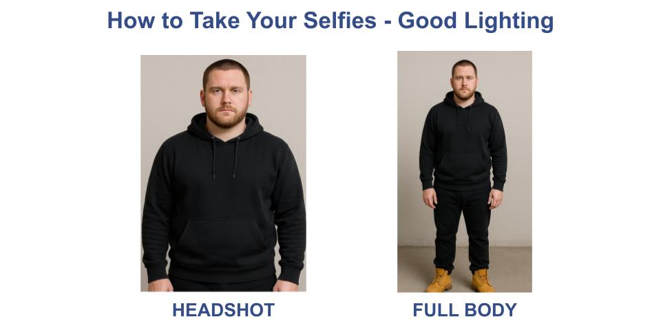 - Recent Full-Body Selfie (facing camera, head to toe)