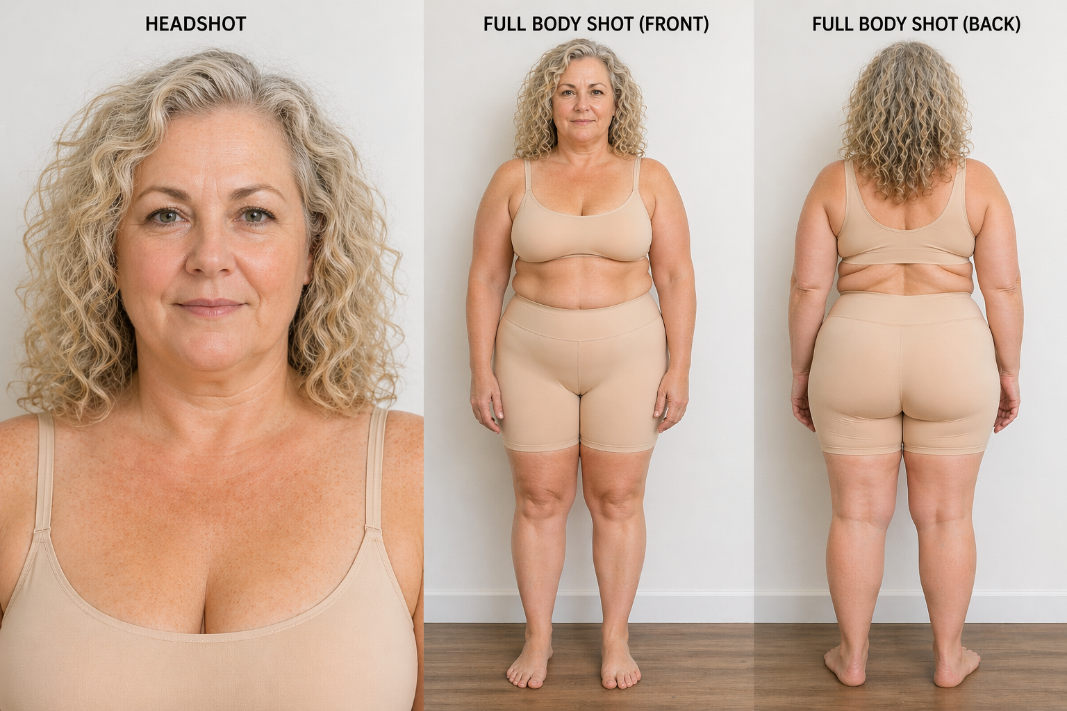 - Camera framing will be limited (shoulders-up and from the back with thighs visible)